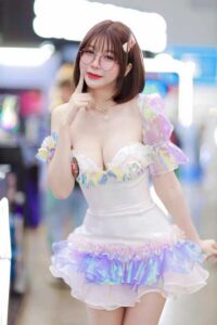 อย่างงานเดรสสุด เซ็กซี่ สีชมพู เหมือนกำลังจะไปออกงานที่ไหนสักแดง สาวแว่น คนนี้ไม่ทำให้ ผิดหวัง เกาะอกเดรส ที่ดันหน้าอกออกมานูน เด่นชัดเจนมาก เห็นแล้วฟินจัด ยิ่งทำหน้าทะเล้นภายใต้แว่นกรอบกลม ยิ่งน่ารักไปอีก ยิ้มหวาน มหาเสน่ห์ ถ่ายแบบ งานโชว์ สะดุดใจในสายตาผู้ชายหลายคนเลย