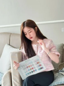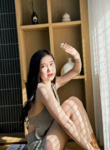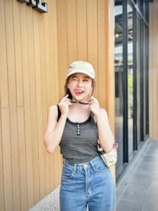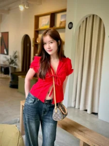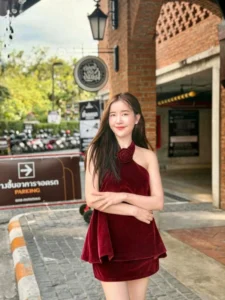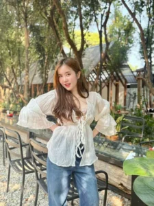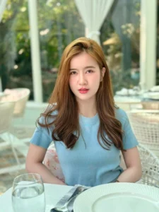 ช่วยขับให้ใบหน้าดูเป็นธรรมชาติ และ สบายตา ดวงตาของเธอเป็นจุดที่ดึงดูดความสนใจได้อย่างเงียบงัน แววตานั้นใส สงบ และ ลึกซึ้ง มีประกายอ่อน ๆ ที่สะท้อนถึงความอ่อนโยน และ ความคิดภายใน ไม่ได้เป็นแววตาที่ท้าทาย หากเป็นแววตาที่เชื้อเชิญให้ผู้มองอยากทำความรู้จัก