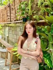ท่ามกลางธรรมชาติ ความสวยของเธอไม่ใช่เพียงรูปลักษณ์ภายนอก แต่เป็นบรรยากาศโดยรวมที่กลมกลืนระหว่างตัวตน ท่าทาง และ สภาพแวดล้อมรอบข้าง จนเกิดเป็นภาพที่อบอุ่น ละมุน และ น่าจดจำ โดยเริ่มจากใบหน้าของเธอมีความอ่อนหวานเป็นพื้นฐาน โครงหน้าดูเรียบเนียน และ สมดุล ดวงหน้ารูปไข่รับกับหน้าผากที่ได้สัดส่วน แก้มที่ไม่อิ่มจนเกินไปแต่มีความนุ่มนวล